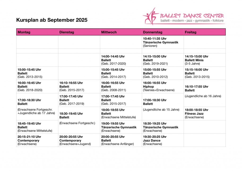 Auf dieser Seite finden Sie unseren aktuellen Kursplan.